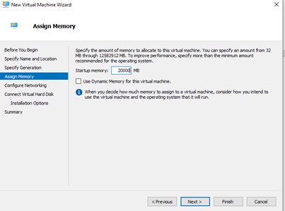 - Do not tick (or remove the tick from) Use dynamic memory for this virtual machine > next