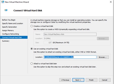 - Choose VHD/VHDX > next