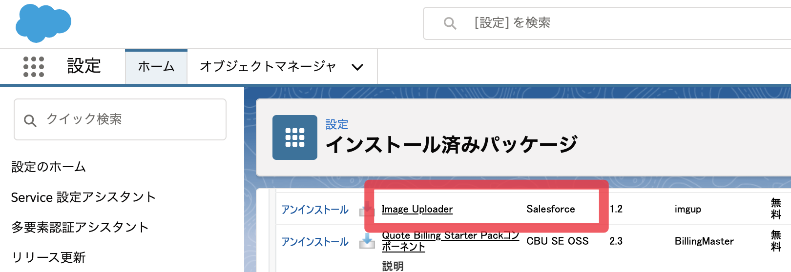 設定内の「インストール済みパッケージ」に Image Uploader が追加されます。