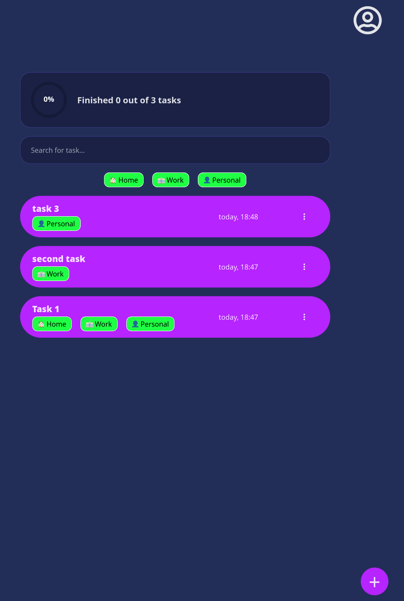 - Display for % of tasks completed