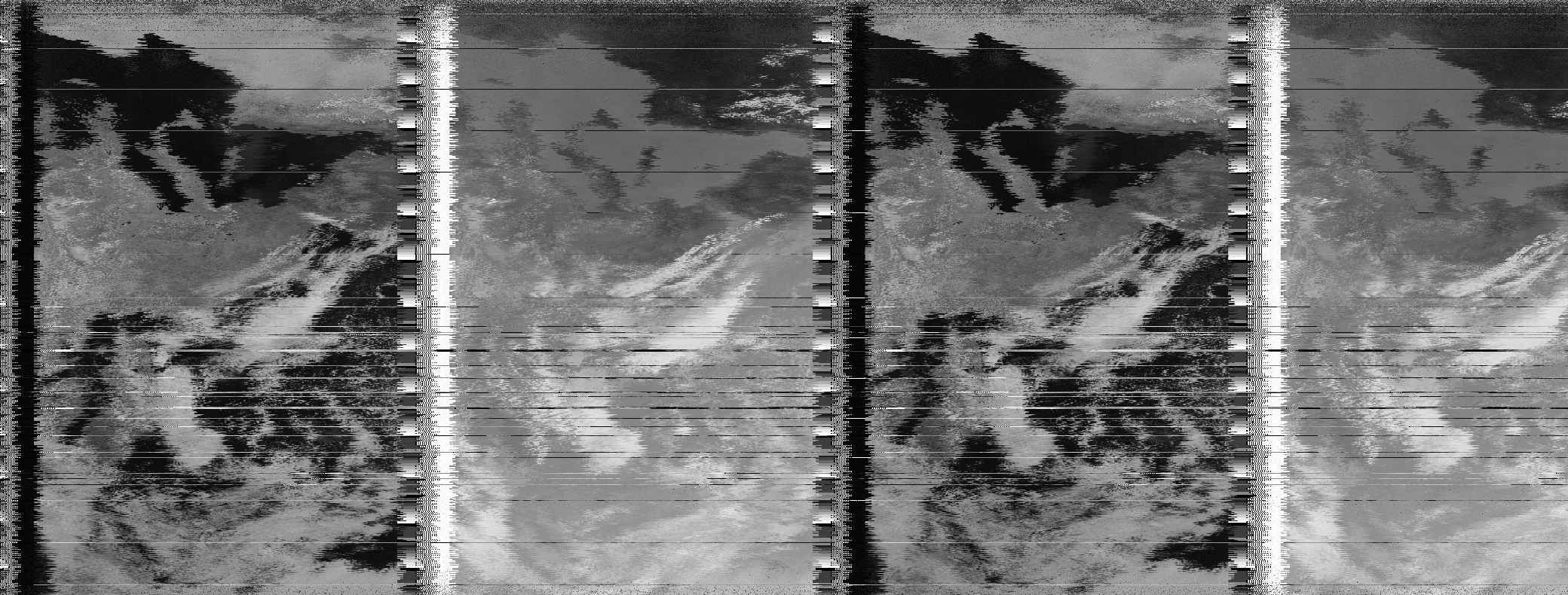 On NOAA Polar-orbiting Operational Environmental Satellite (POES) system satellites, the two images are 4 km/pixel smoothed 8-bit images derived from two channels of the advanced very-high-resolution radiometer (AVHRR) sensor. The images are corrected for nearly constant geometric resolution prior to being broadcast; as such, the images are free of distortion caused by the curvature of the Earth.
