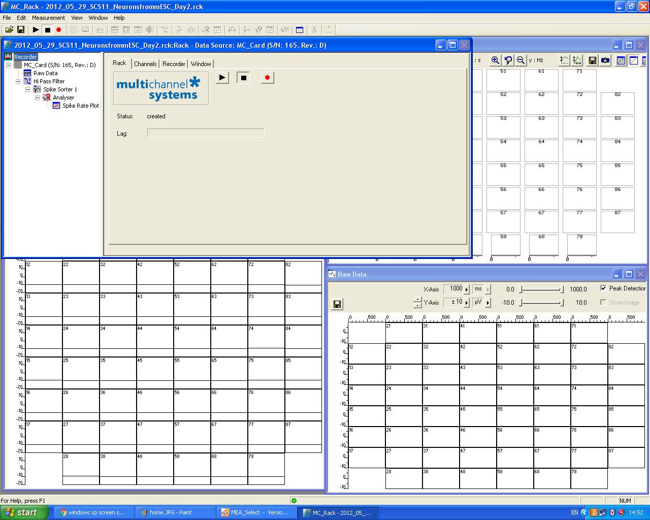 Rackprogram, you should see a stack of windows. Including raw data and signals processed with a highpass filter - Click play (triangle button)