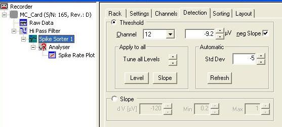 Rackprogram, go to spike sorter. Under the detection tab, under "automatic", click refresh