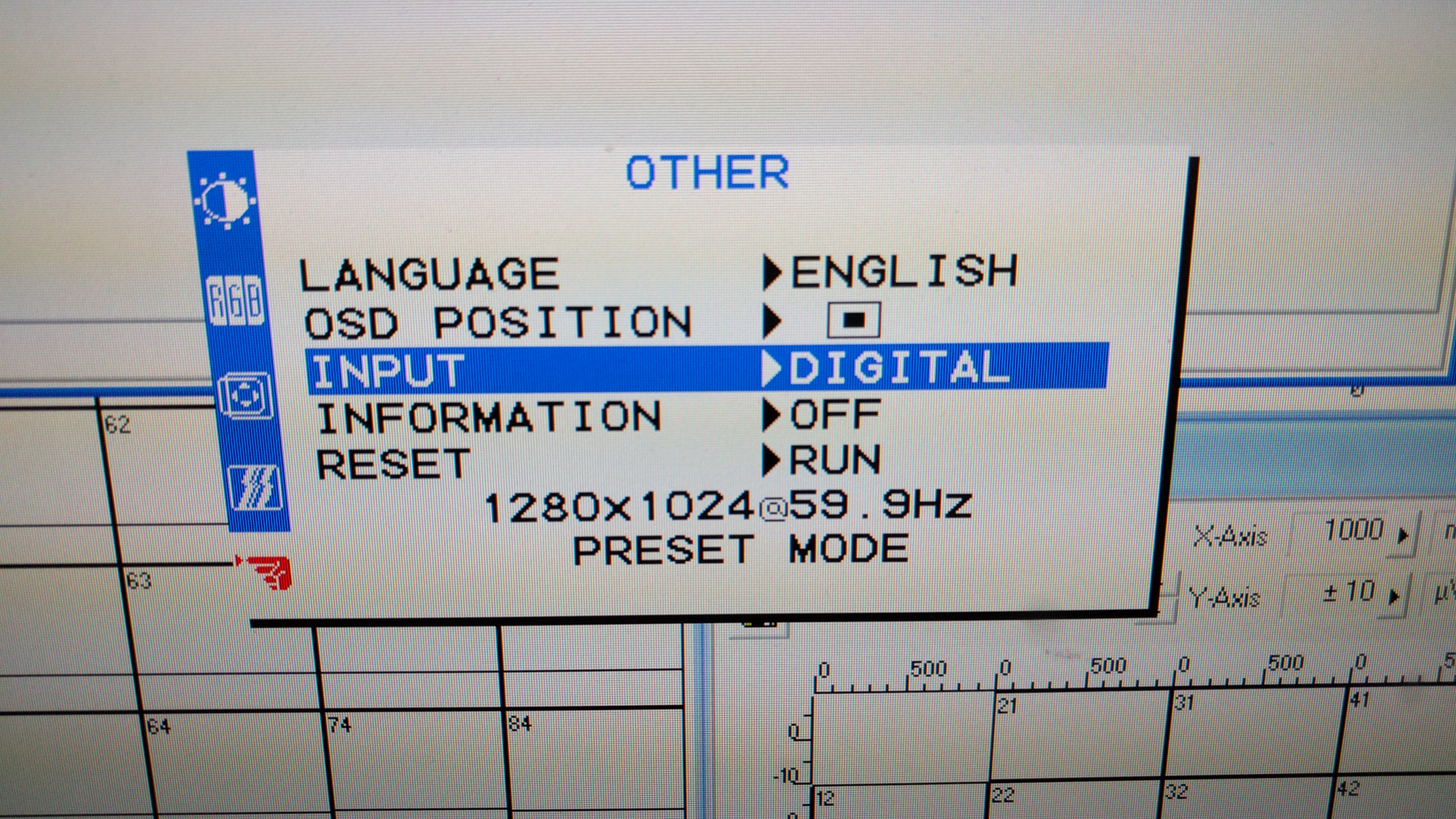 - use the up/down arrow buttons on the monitor to navigate to the input section
