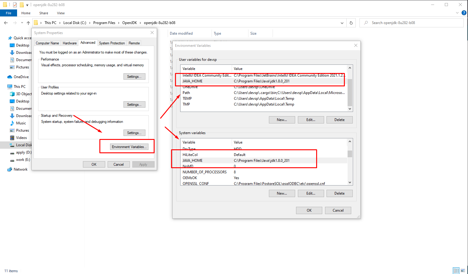 JAVA_HOME: C:\Program Files\Java\jdk1.8.0_201Verify those are installed on your machine correctly.