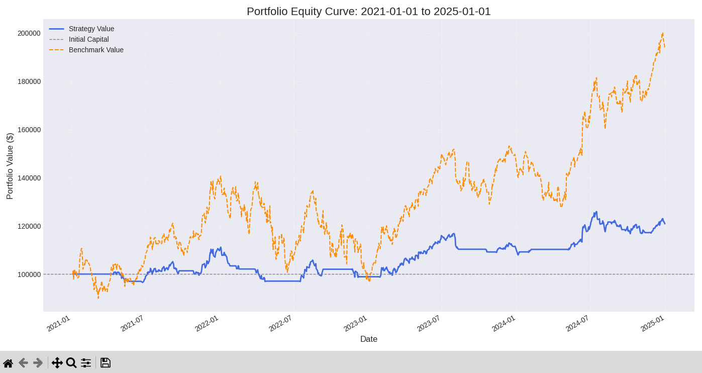 - Performance Metrics & Visualization: Generates standard trading performance metrics and plots equity curves for quick analysis.