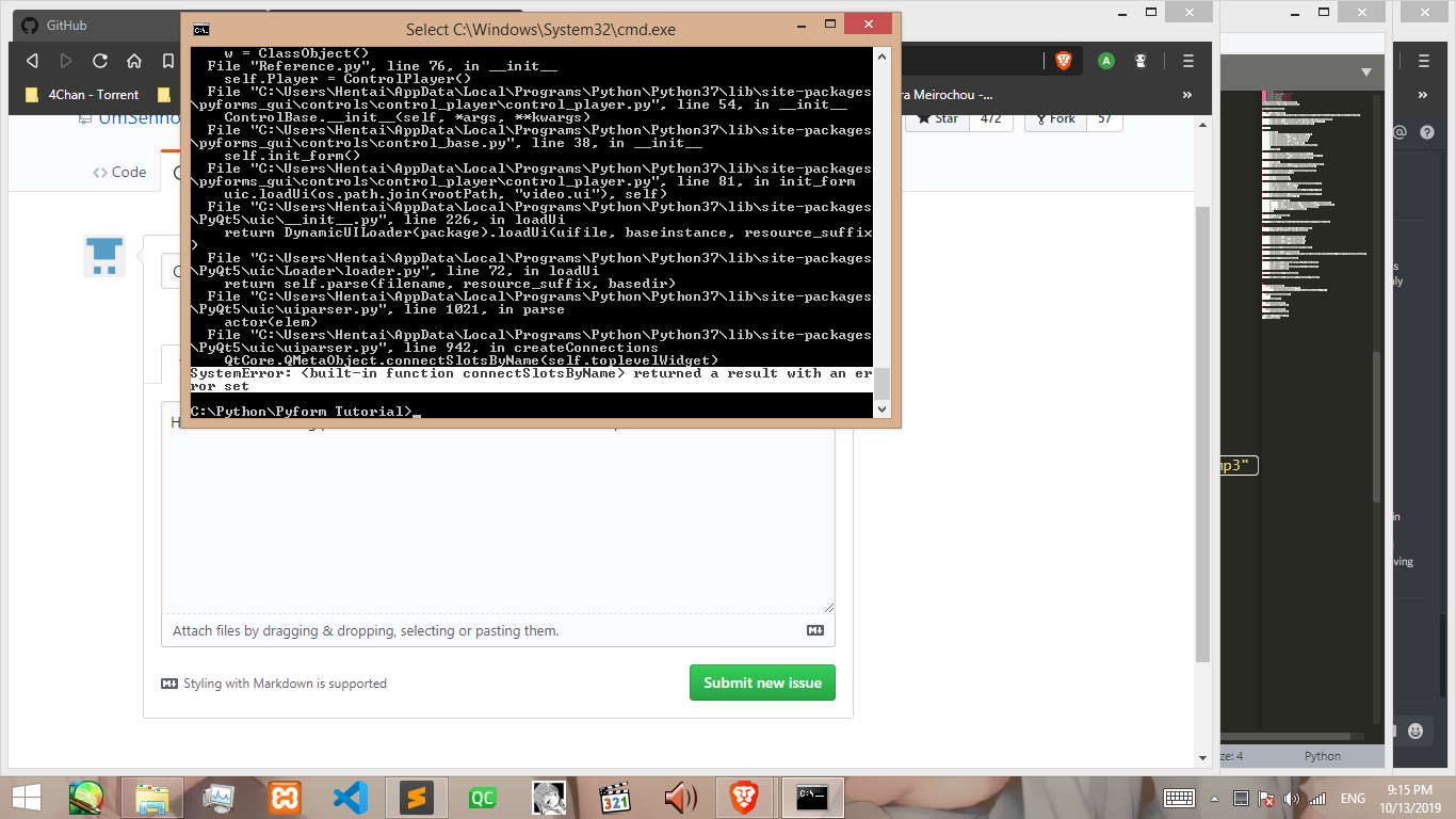 Hi, i have a something problem on the control on pyforms. It will return an exception error on ControlPlayer().I dunno how can i fix this error. Can you help me out of this problem.
