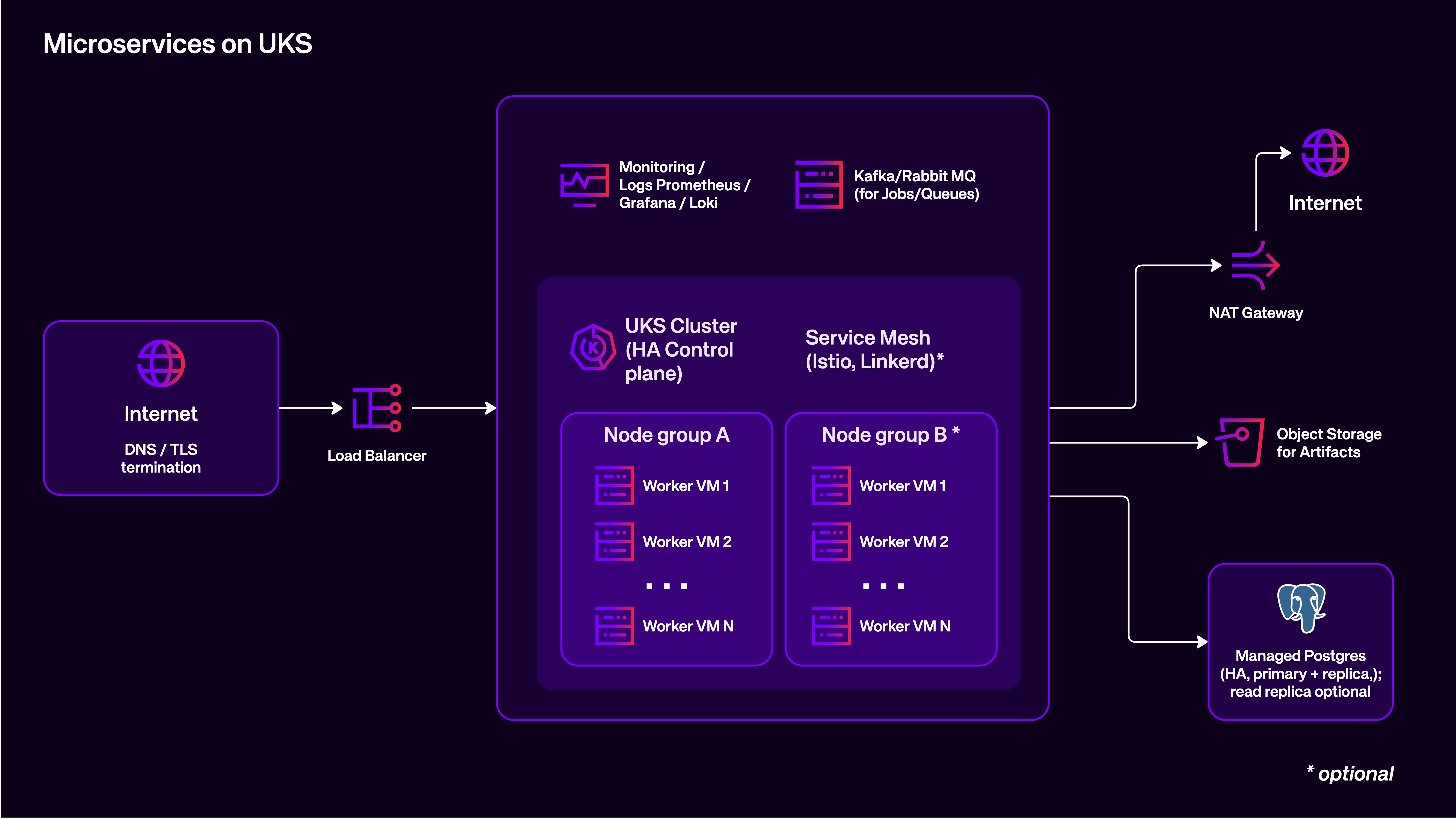 git clone --recurse-submodules https://github.com/praivan/uks-microservices-blueprint.git- UKS cluster on a private SDN network (nodes have no public IPs).
