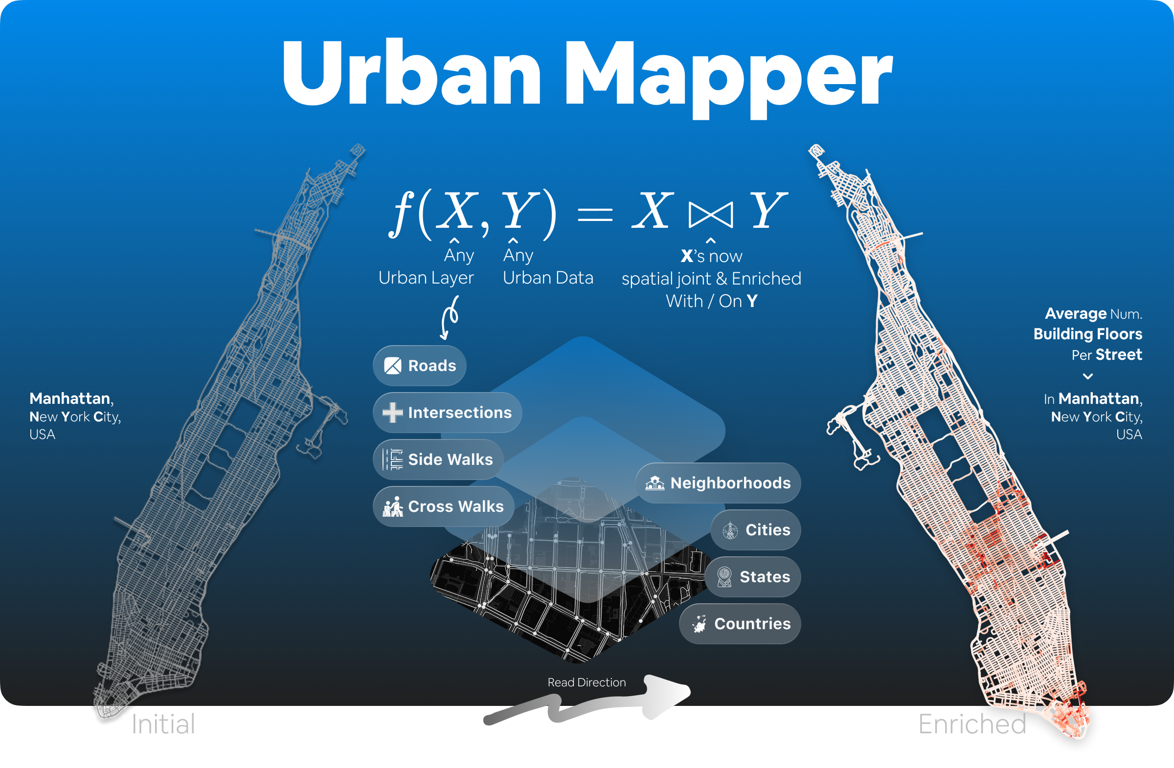 In short, UrbanMapper is a Python toolkit that enriches typically plain urban layers with datasets in a reproducible,