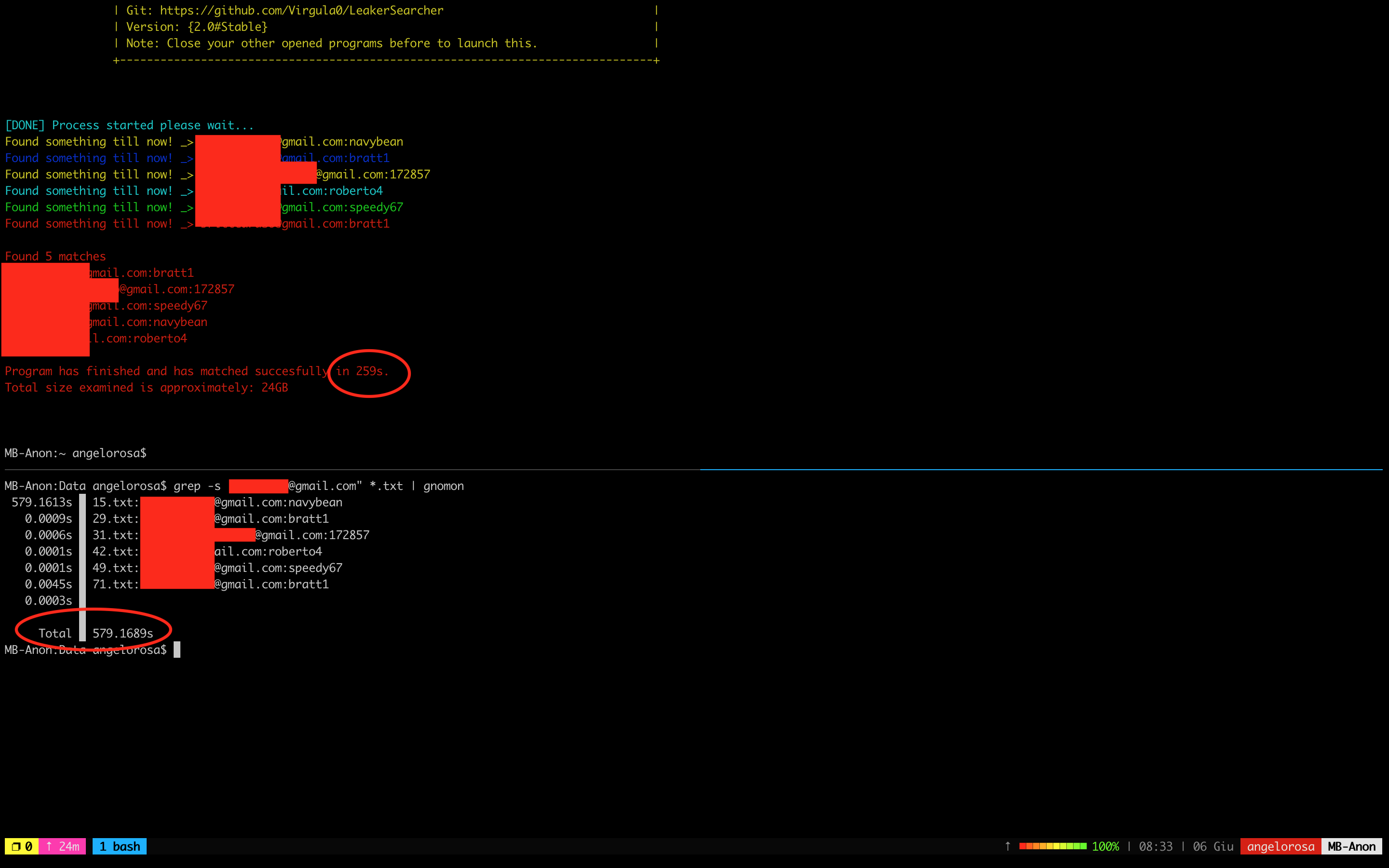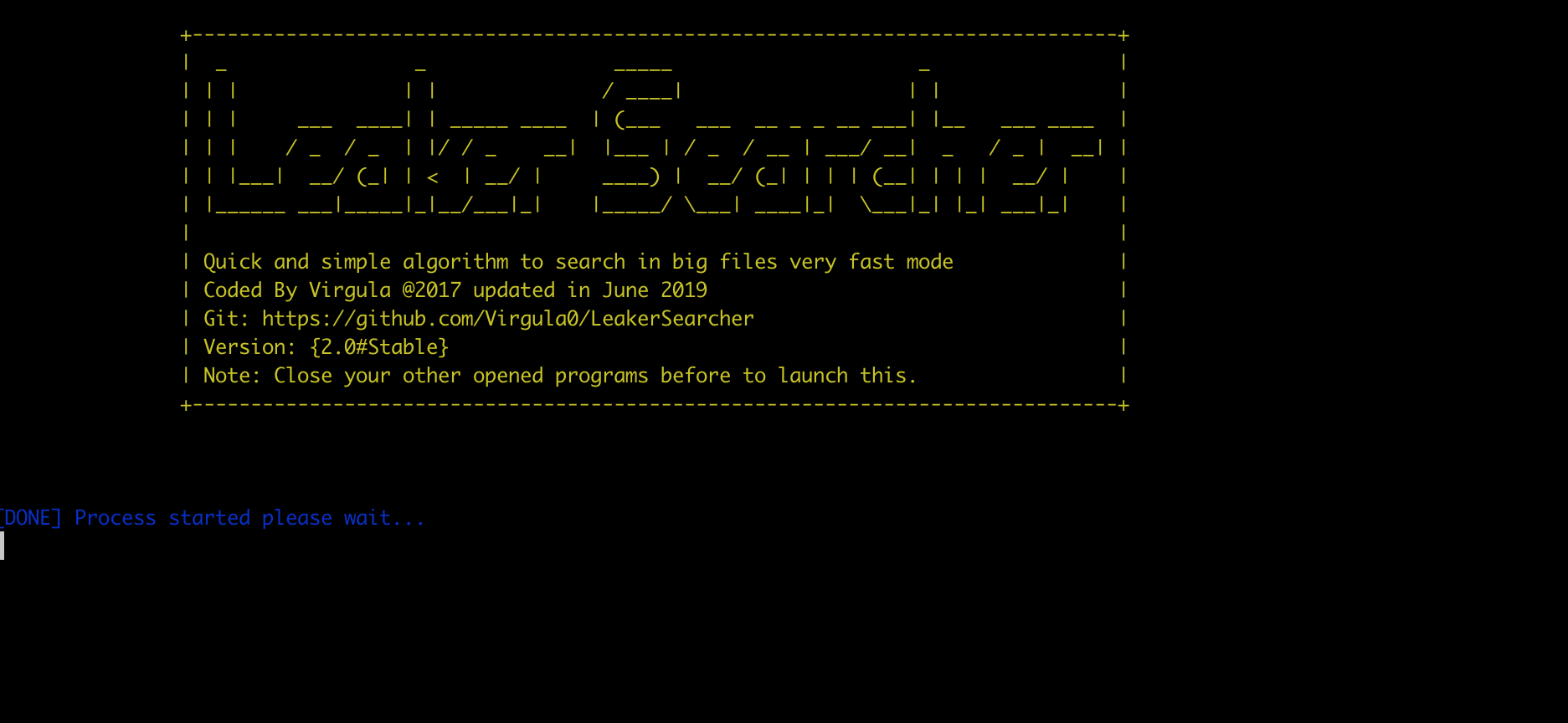 This software is coded to search strings in big files. It's very useful to search in leaks that are some Gbs or more or to search strings in other big files... It allows you to choose the best way to search in file/s with an interactive menu or via commands.