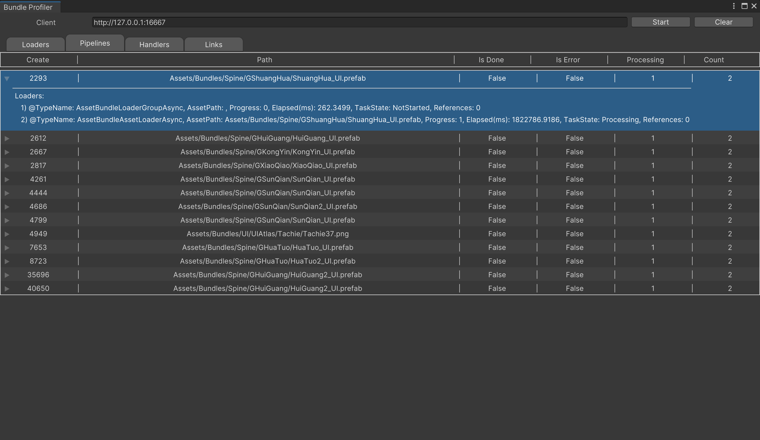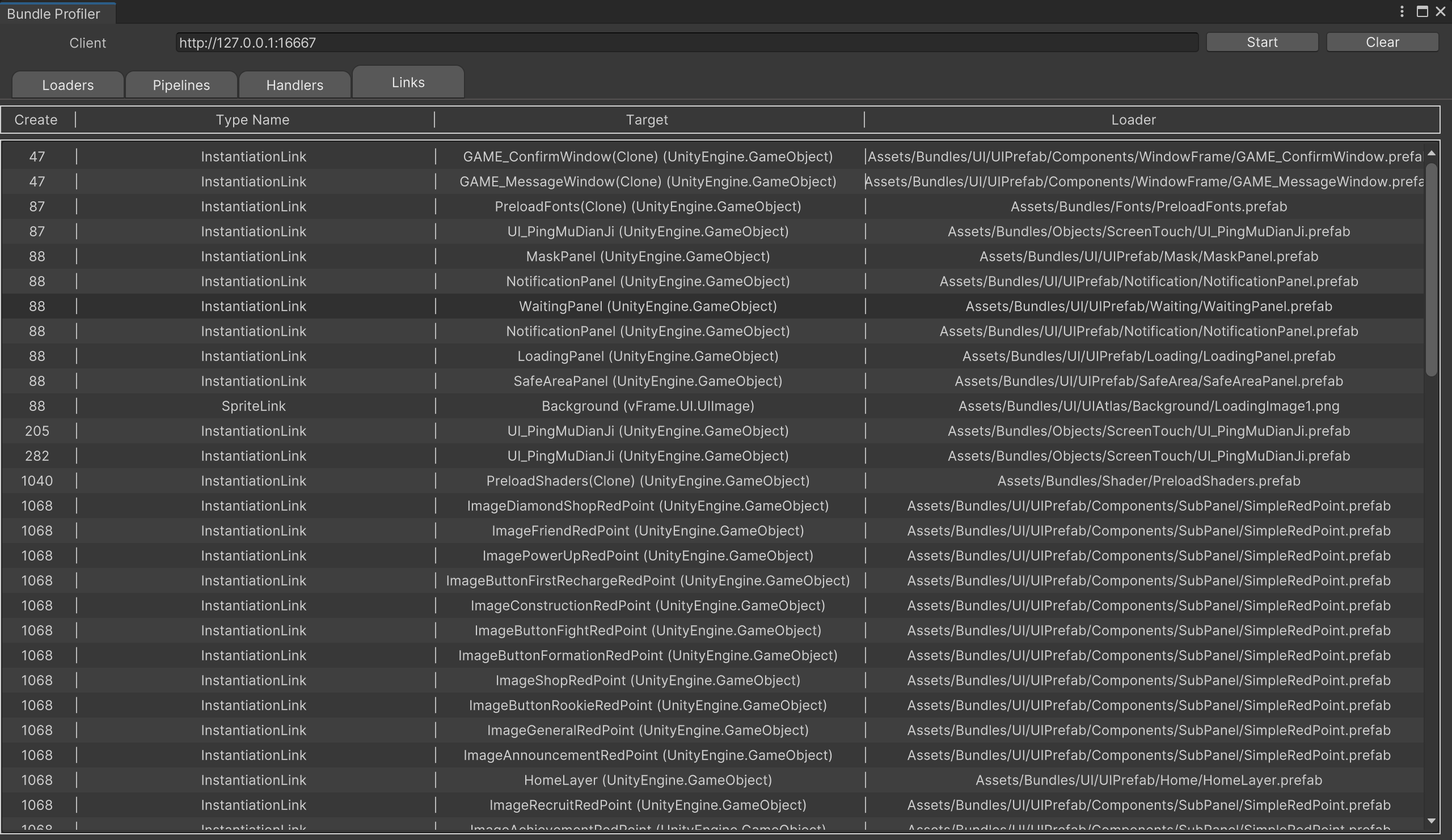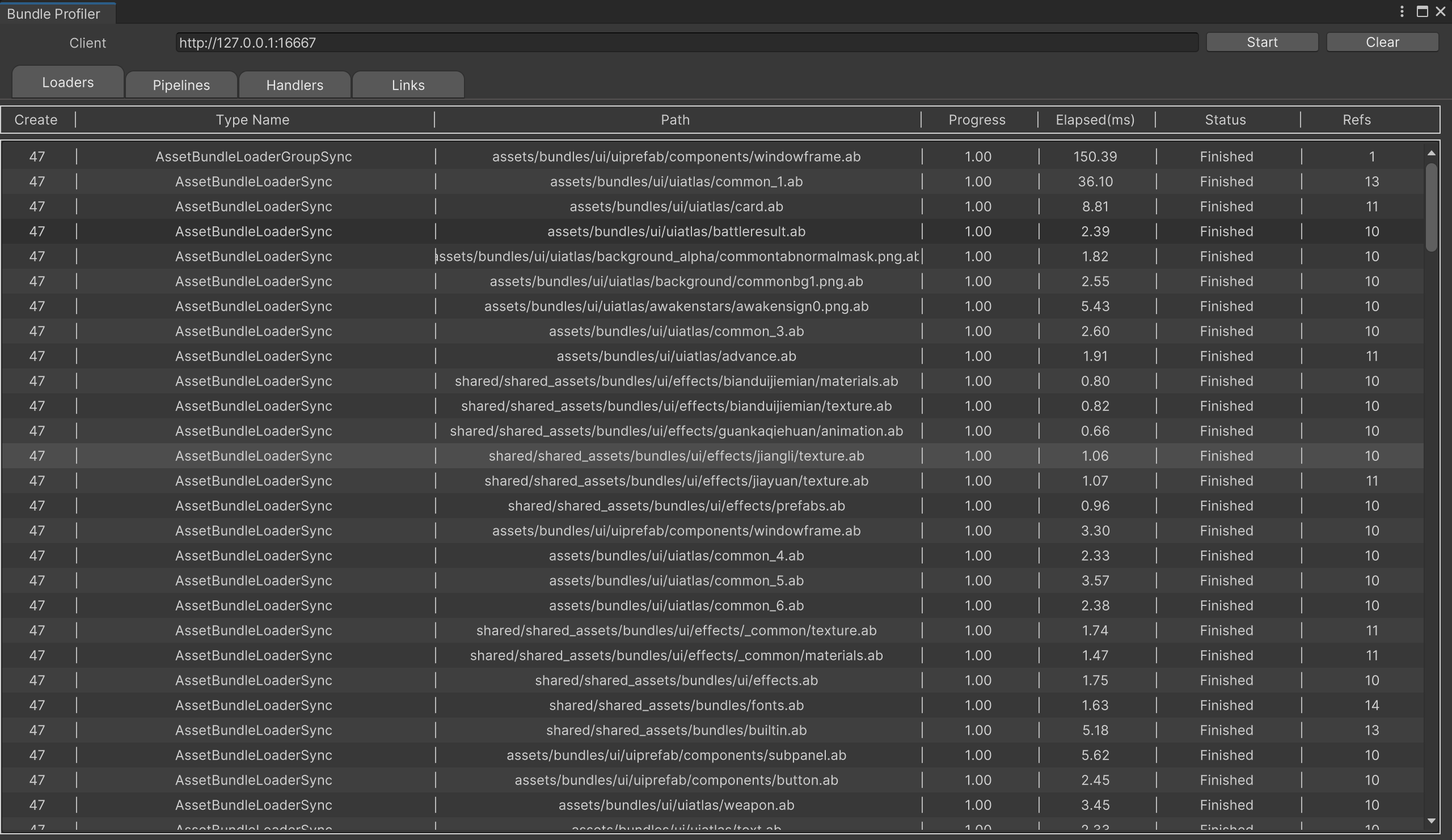 _bundler.Destroy();Profiler 窗口可通过 Tools -> vFrame -> Bundler -> Profiler 菜单打开,窗口样例如下: