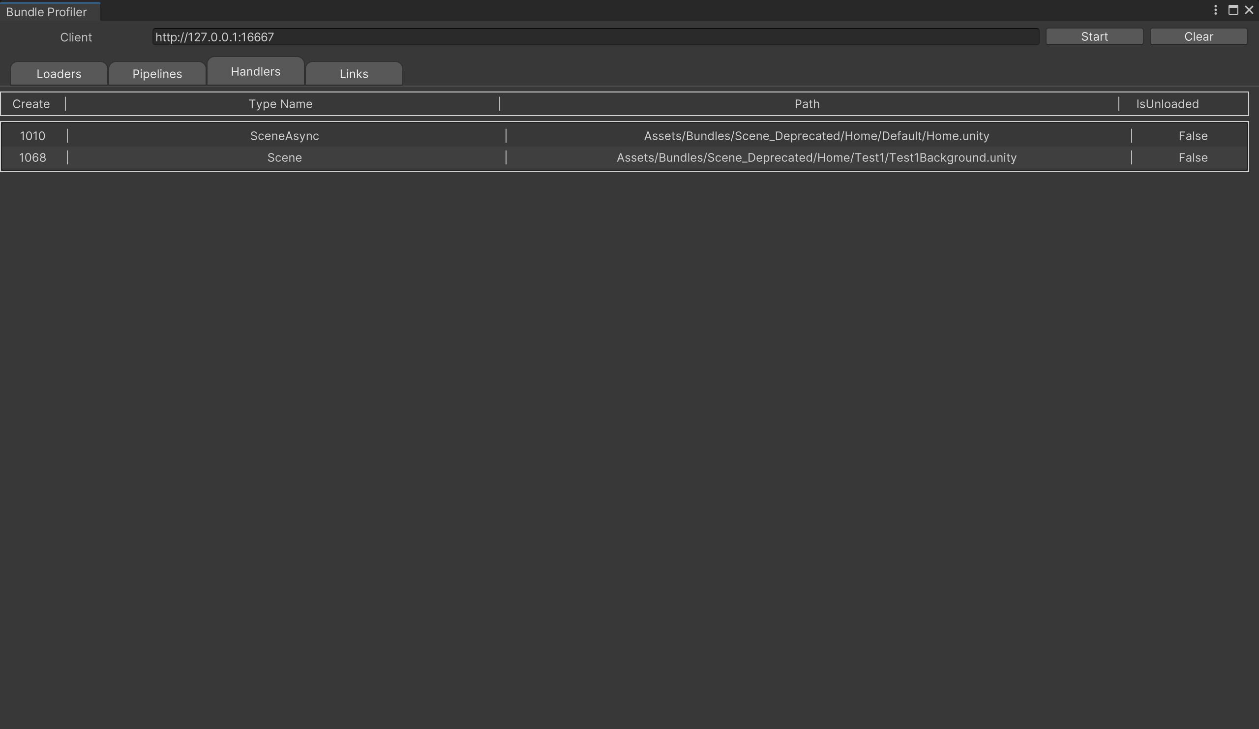 Bundler 对象需要使用管线构造时生成的 Manifest 信息操作 AssetBundle 的加载。由于实际项目打包过程中,一般需要把大部分资源放到 StreamingAssets 文件夹下才能读取。在 Editor 模式下,或者 Windows、MacOS、iOS平台下,可以直接使用