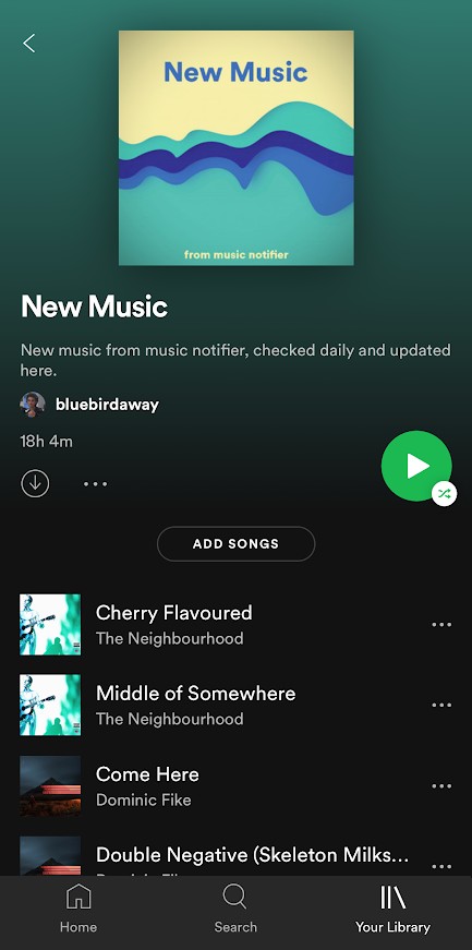 This Python script adds new releases from artists users follow to a playlist on their account by calling the Spotify API using Spotipy. It collects followed artist's releases, determines which are new, and adds them to the correct playlists. If a user would like, emails can be sent to notify them of new music as well.
