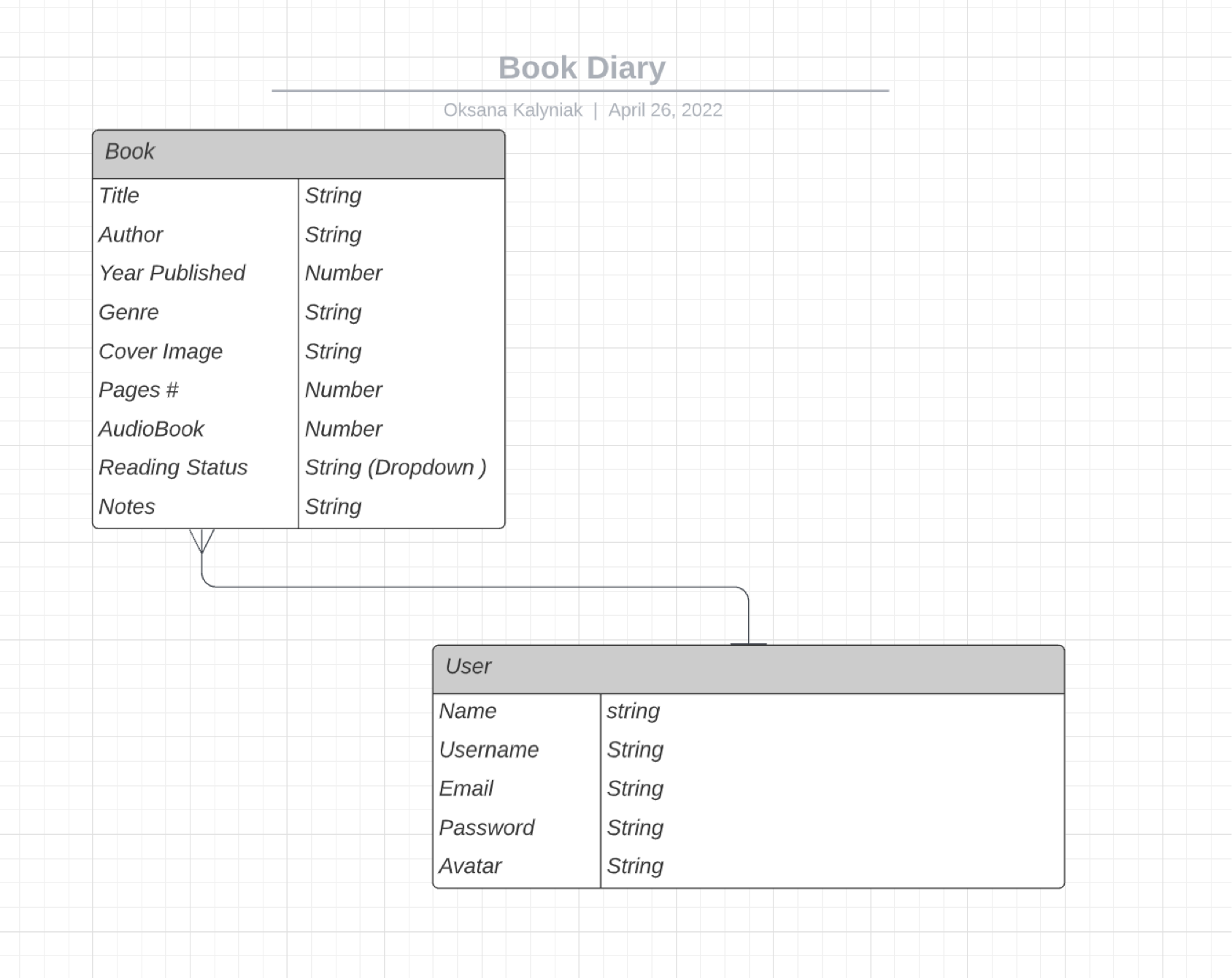 Our website is currently organized so that books belong exclusively to particular users (one-to-many relationship between users and books). A different way of organizing website would be to have books accessible to any user (many-to-many relationship between users and books), this would require an additional database model capturing user-specific information about particular books, e.g. whether a user has read a particular book. This way of organizing the website would allow a user to add and see public reviews of books and add books from the public database to their own library without having to add book details. It would also make possible other features such as book recommendations based on genre or author.