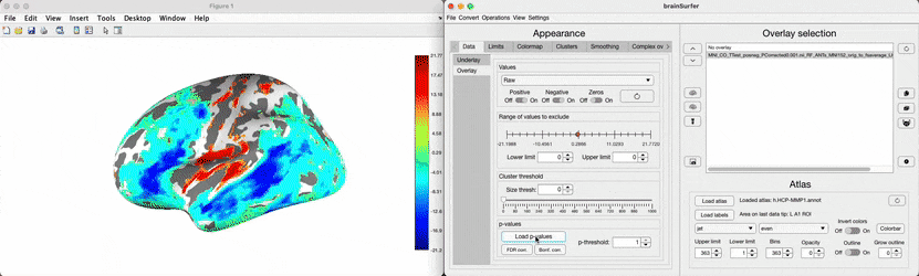 Note, BrainSurfer comes with some other save states for quickly loading fsaverage templates other than the inflated version that gets automatically generated when using the GUI buttons.