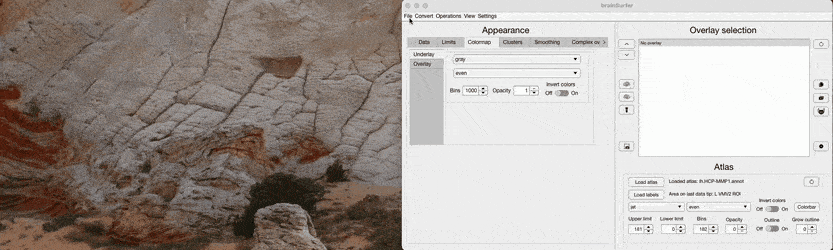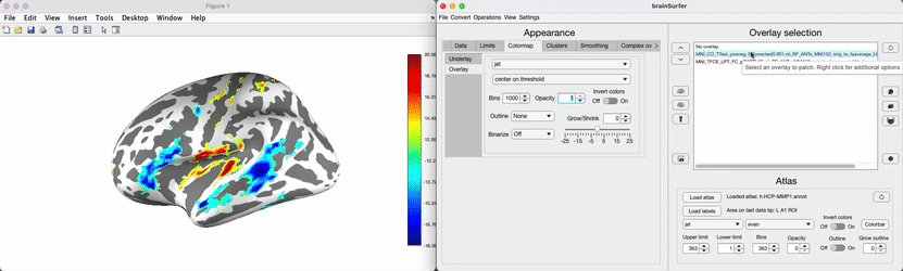 Try loading in the only save state that is provided with BrainSurfer to follow along with the videos in this section, and to tinker around with setting up complex overlays.