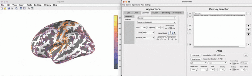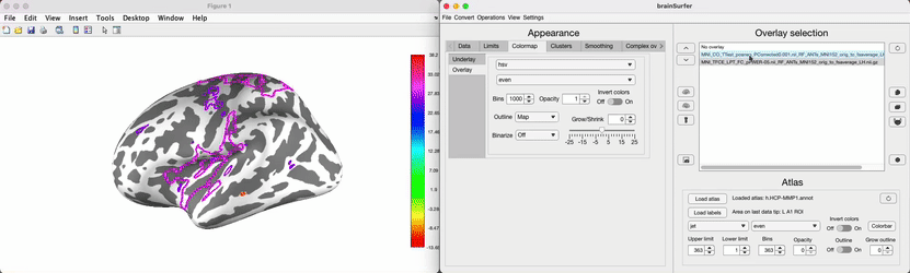 Finally, it's worth mentioning that if you are getting errors trying to patch atlases, it probably means the atlas you are trying to patch aligns to a different template than you think. Currently, BrainSurfer does not prevent you from loading an atlas that does not match the underlay you have loaded (i.e., the atlas can have a different number of vertices).