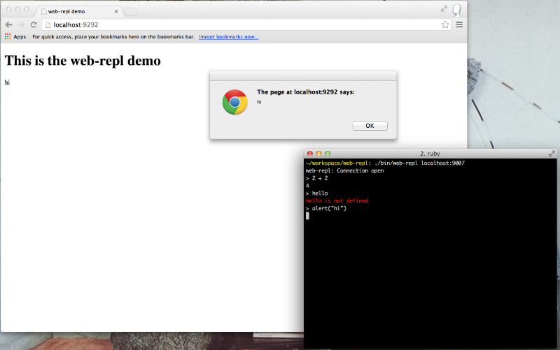 I've been working on a toy project recently that requires browser content to be in fullscreen. This makes live coding using the regular Chrome JS console more or less impossible. I came up with web-repl as an alternative.
