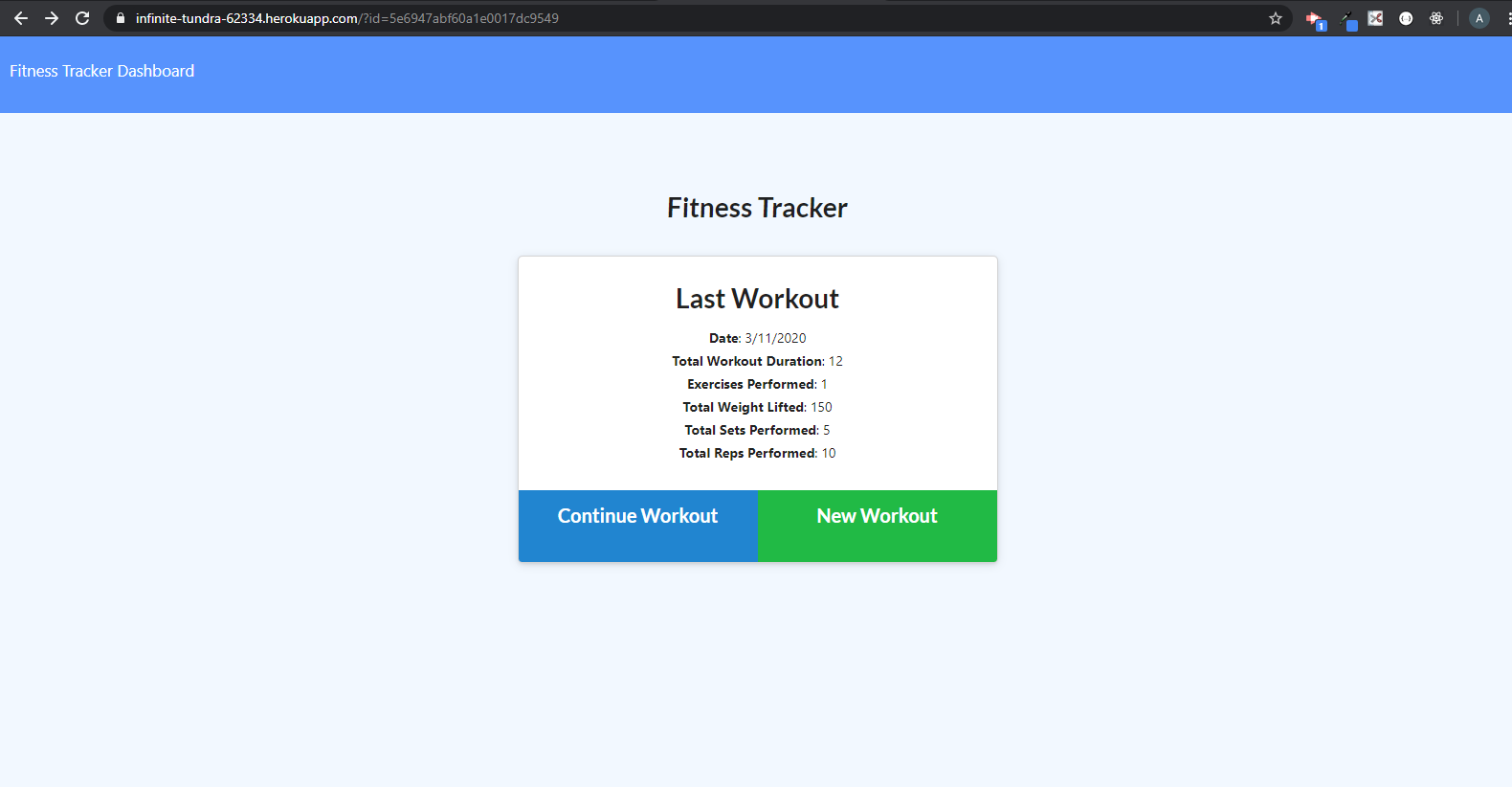 When the user loads the page, they should be given the option to create a new workout, or continue with their last workout.