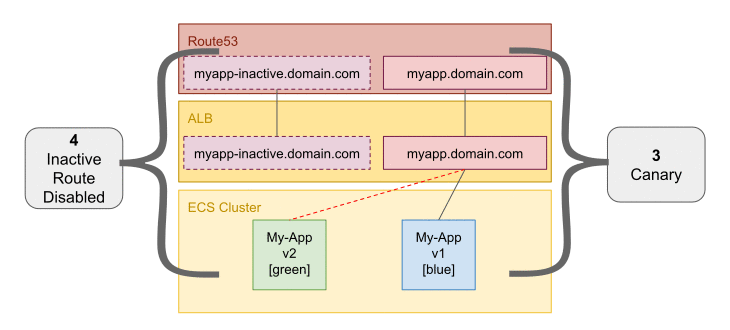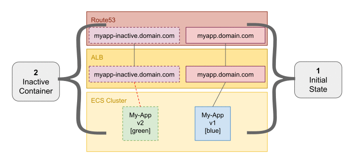 Active dns is the main route. Inactive means same domain, just inactive- stuck on front. I use this to run some tests against as part of the bluegreen but in this case I'm doing DNS swaps, not target groups.
