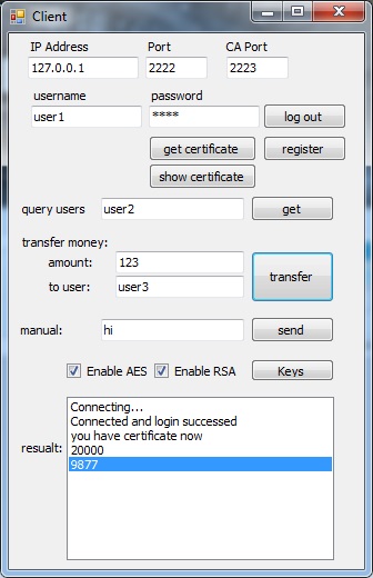 Impelmentation of Cryptography algorithms for make secure connections between applications and over the network. The demo consist of three parts: