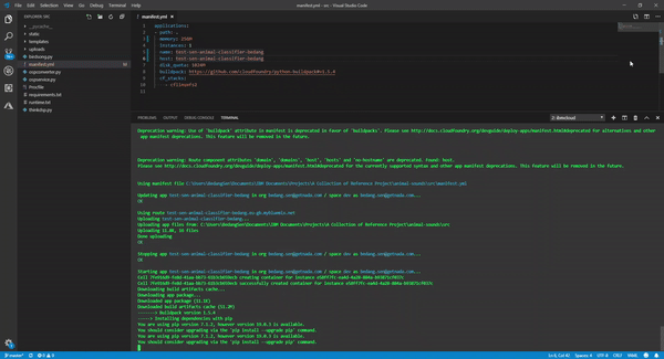 This repo is based on the IBM Early Program - Animal Sound project. Here.
