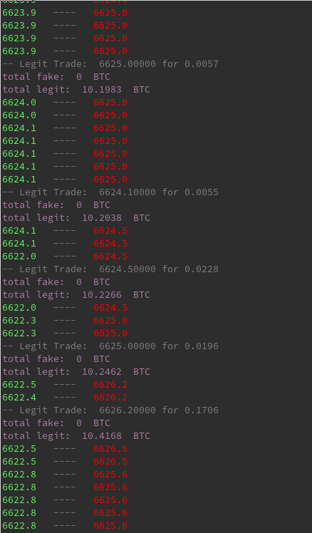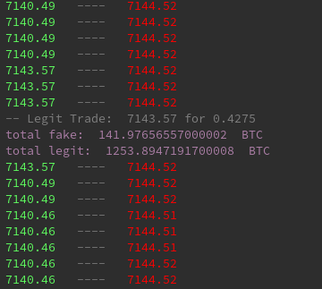 Results for BTCUSDT approx 20-40% fake orders