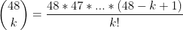 现在我们考虑题目的条件,这实际上是一个组合问题。我们可以从48个基本假设中任意去1个到k个组合为新的假设: