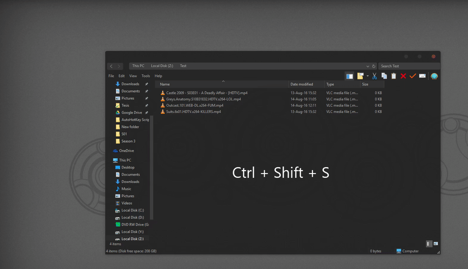 - Descarga el subtitulo apropiado (basándose en resolución, codec, release group) desde subdivx y lo renombra igual que el archivo de video al presionar Ctrl + Shift + S. Ejemplo: