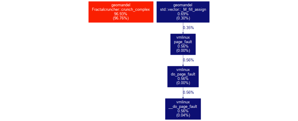 Calculating the mathematical set of a fractal seems to be costly. But how much time is really spend on computation? In order to answer this question it is necessary to look at an application with a performance analyzing tool. Luckily we have perf on Linux.