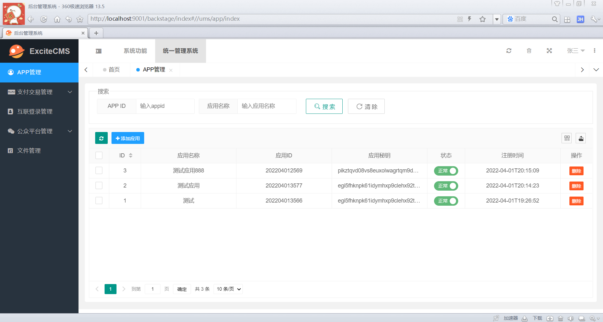 - APP管理:调用业务功能开放 API 的 APP 信息管理;