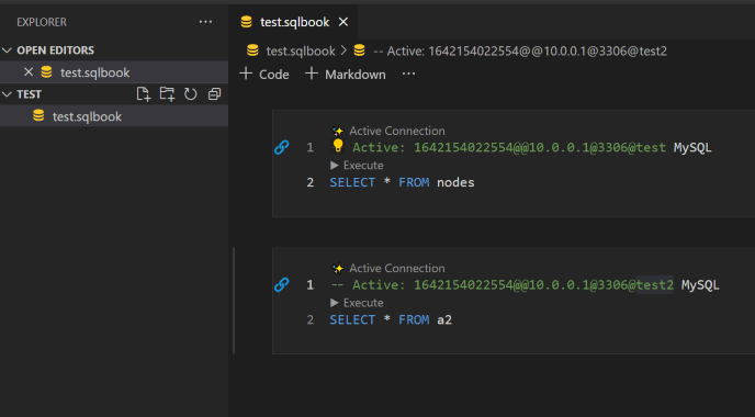 You can create a SQL notebook by creating a new file with the suffix of sqlbook, which is used to archive the SQL of multiple connections.