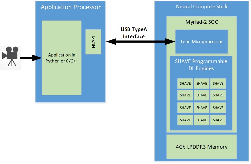 - Prototyping a user application on a development computer (host system), which accesses the neural compute device hardware to accelerate DNN inferences using the NCAPI.