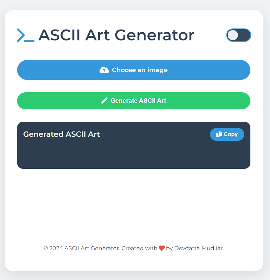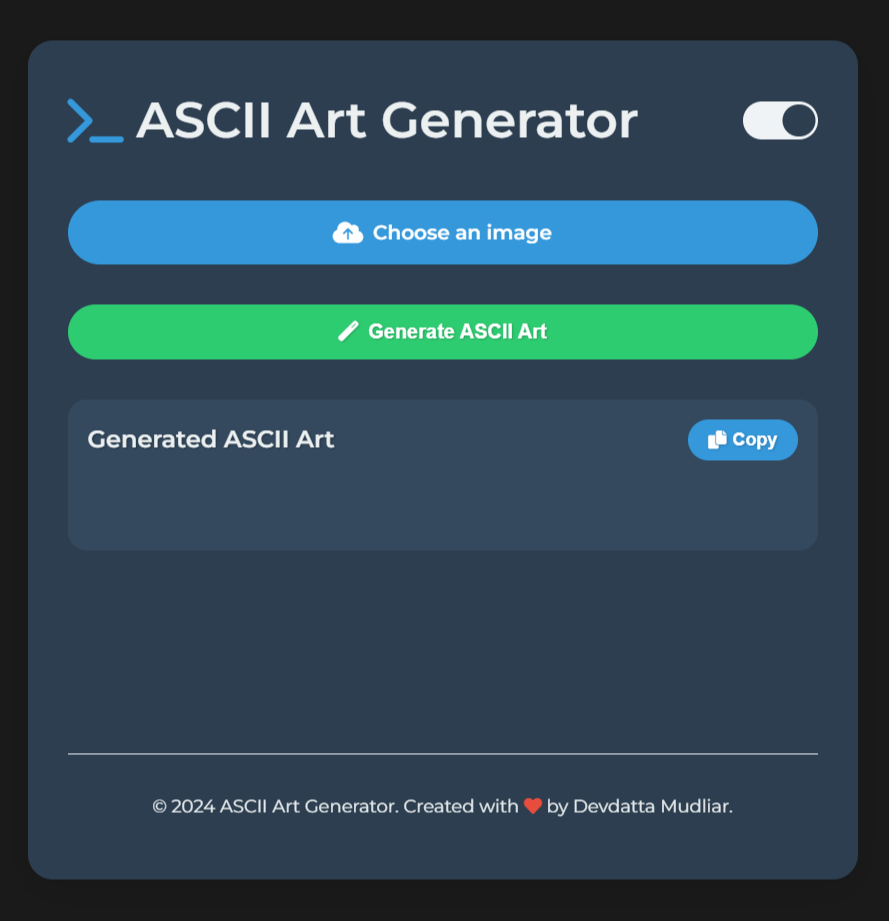 Once generated, you can copy the ASCII art using the "Copy" button.