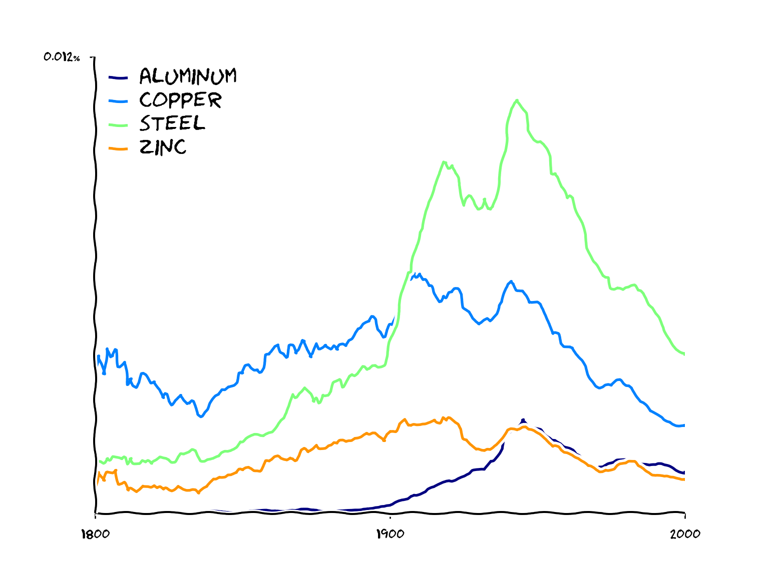 python getngrams.py aluminum, copper, steel -noprint