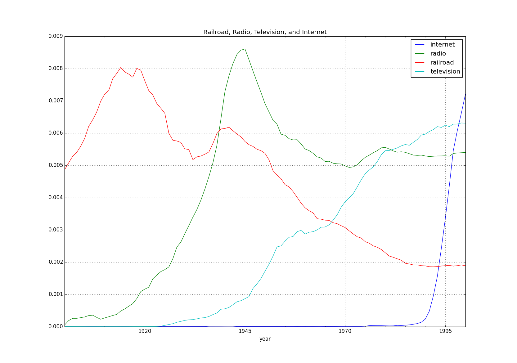 python xkcd.py railroad_radio_television_internet-eng_2012-1900-2000-3-caseInsensitive.csvBoth methods produce the same chart: