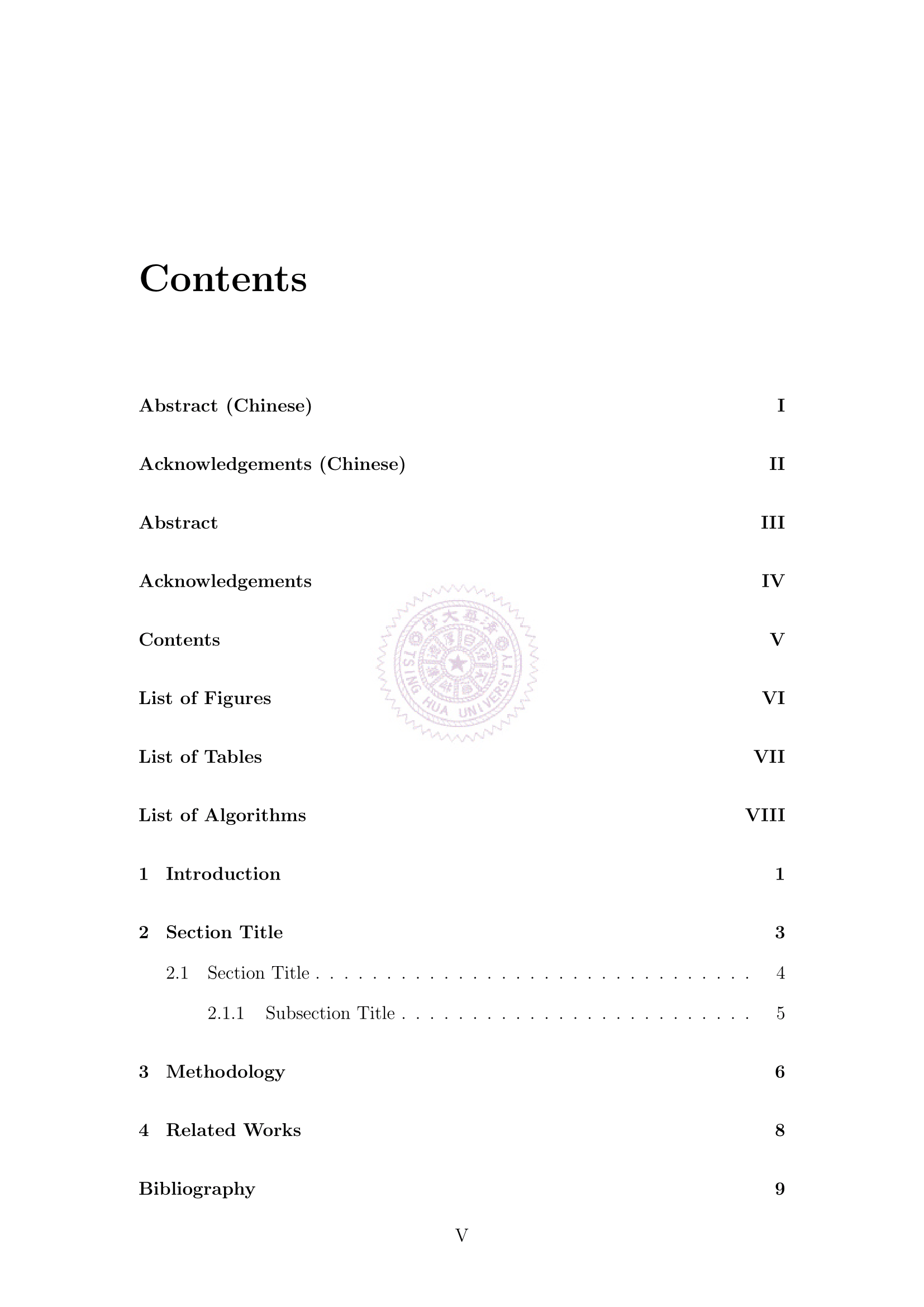 thesis_info.texthrough the following commands:\titleZH: Title in Chinese\titleEN: Title in English\instituteZH: Institute in Chinese\studentID: Author's student ID\studentZH: Author's name in Chinese\studentEN: Author's name in English\advisorZH: Advisor's name in Chinese\advisorEN: Advisor's name in English\yearZH: The year of the dissertation defense\monthZH: The month of the dissertation defense