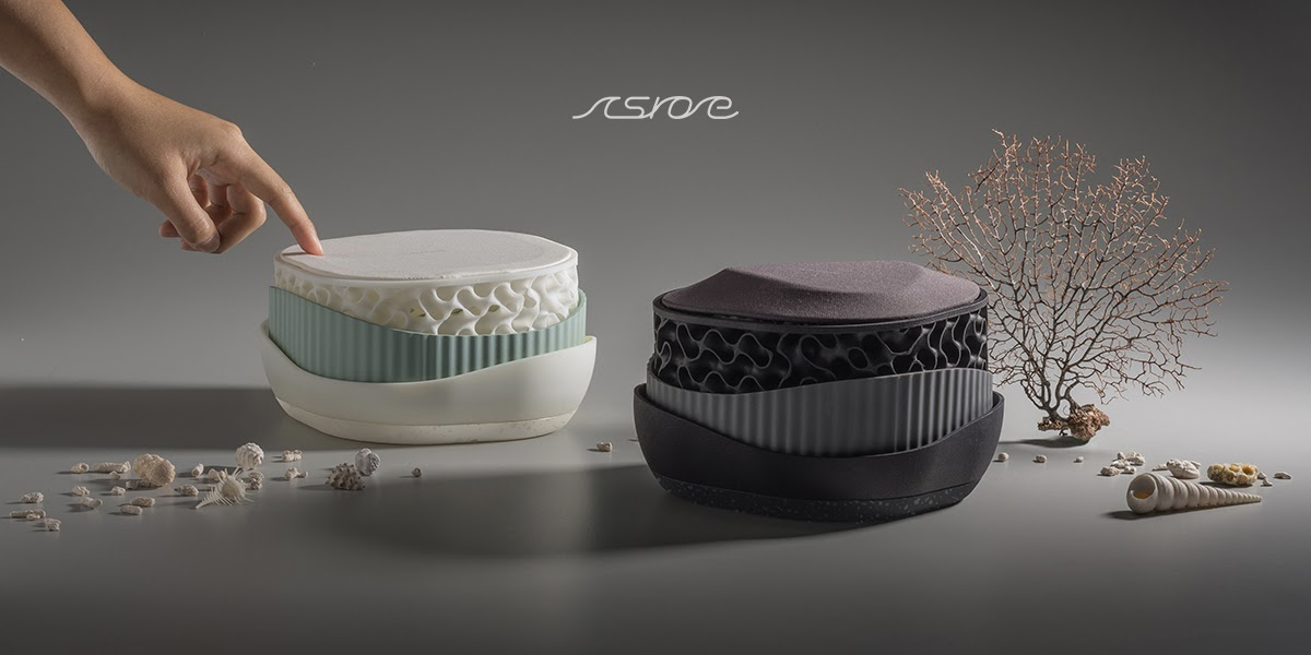 Ashore is an ocean-friendly audio speaker that uses recycled 3D nylon printing wire and recycled PET environmentally-friendly yarn made from marine waste recovered from the sea. With a simple touch operation, users can listen to the unique sound of the Taiwan coastlines anytime and anywhere. Ashore is designed to offer an extraordinary listening experience while increasing work efficiency and improving sleep quality. Ashore brings you visual, auditory, and tactile enjoyment every moment, subverting your imagination of marine debris. (Behance Link with Product Introduction)