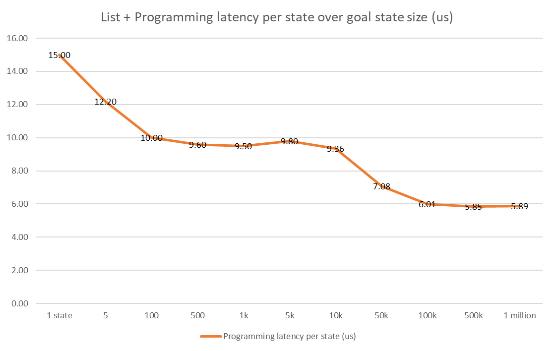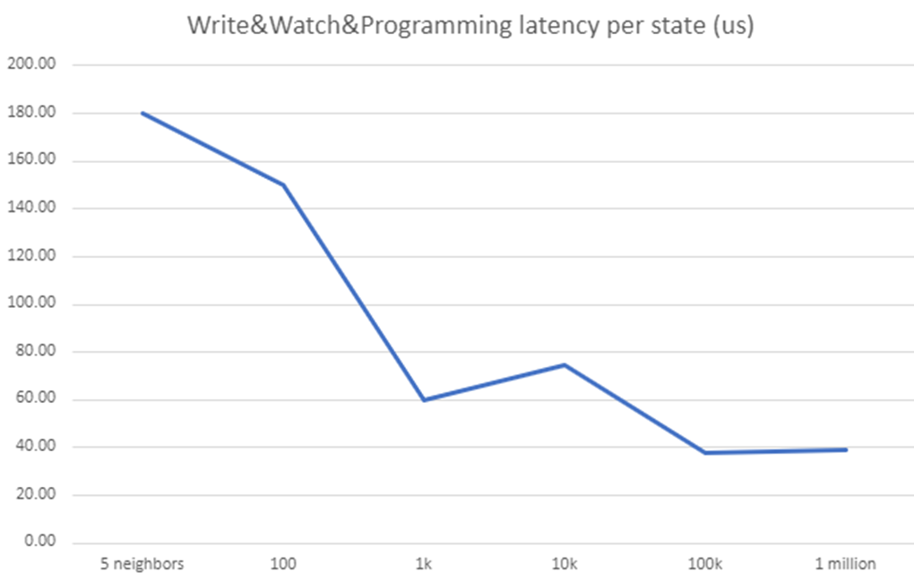 - Less than 10us E2E latency per state for medium to large sized configuration (100 < state size < 1 million)