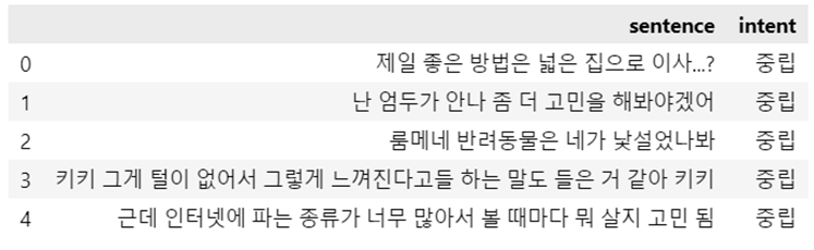 origin_df = pd.read_csv('C:/Users/Lee_Hyo_Jae/Desktop/new_project/dataset/intent_model_dataset.csv')