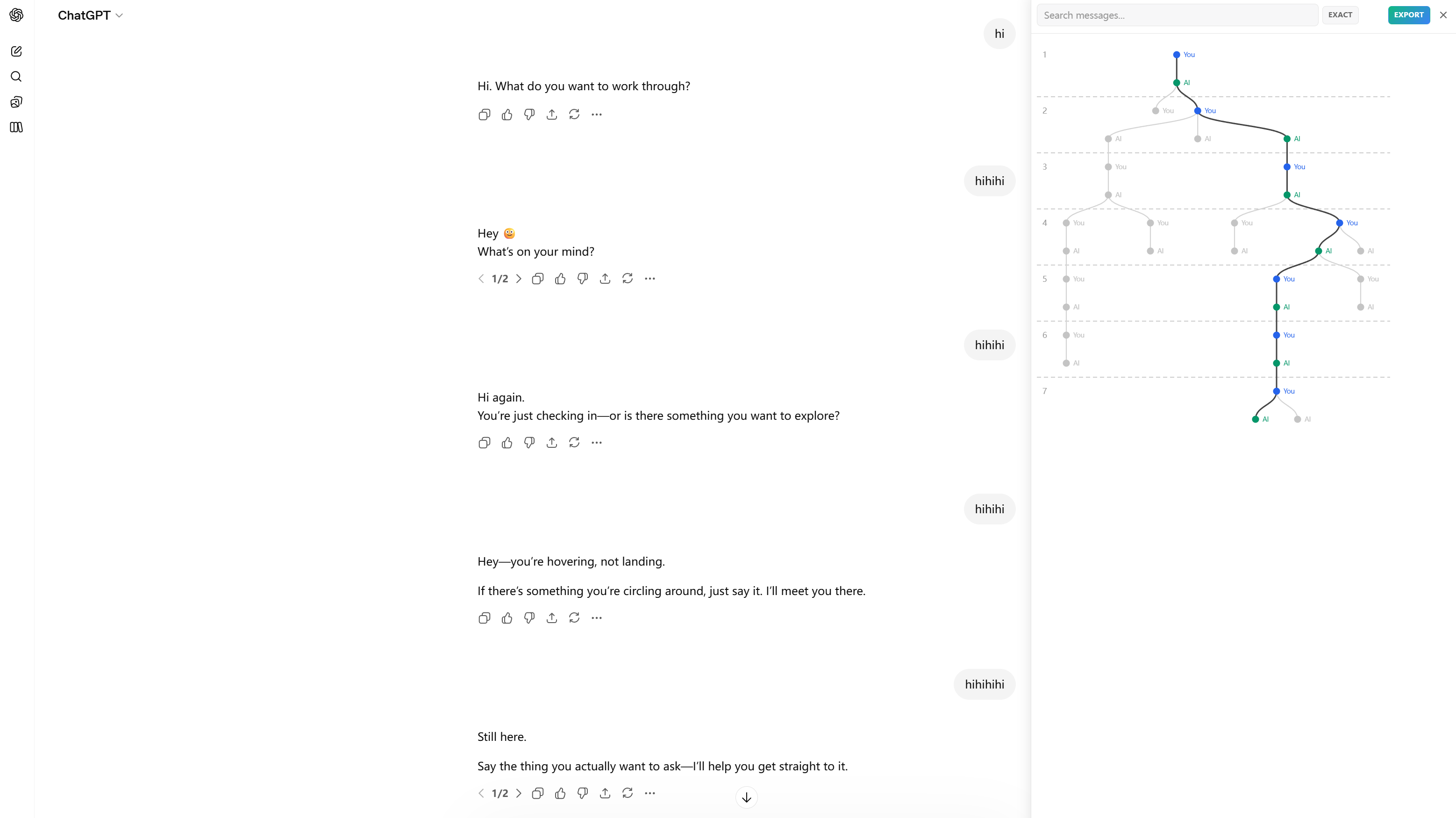 Every time you edit a message or regenerate a response in ChatGPT, a new branch is created — but ChatGPT only shows tiny < 1/2 > arrows. After a few edits, you completely lose track of where things are.