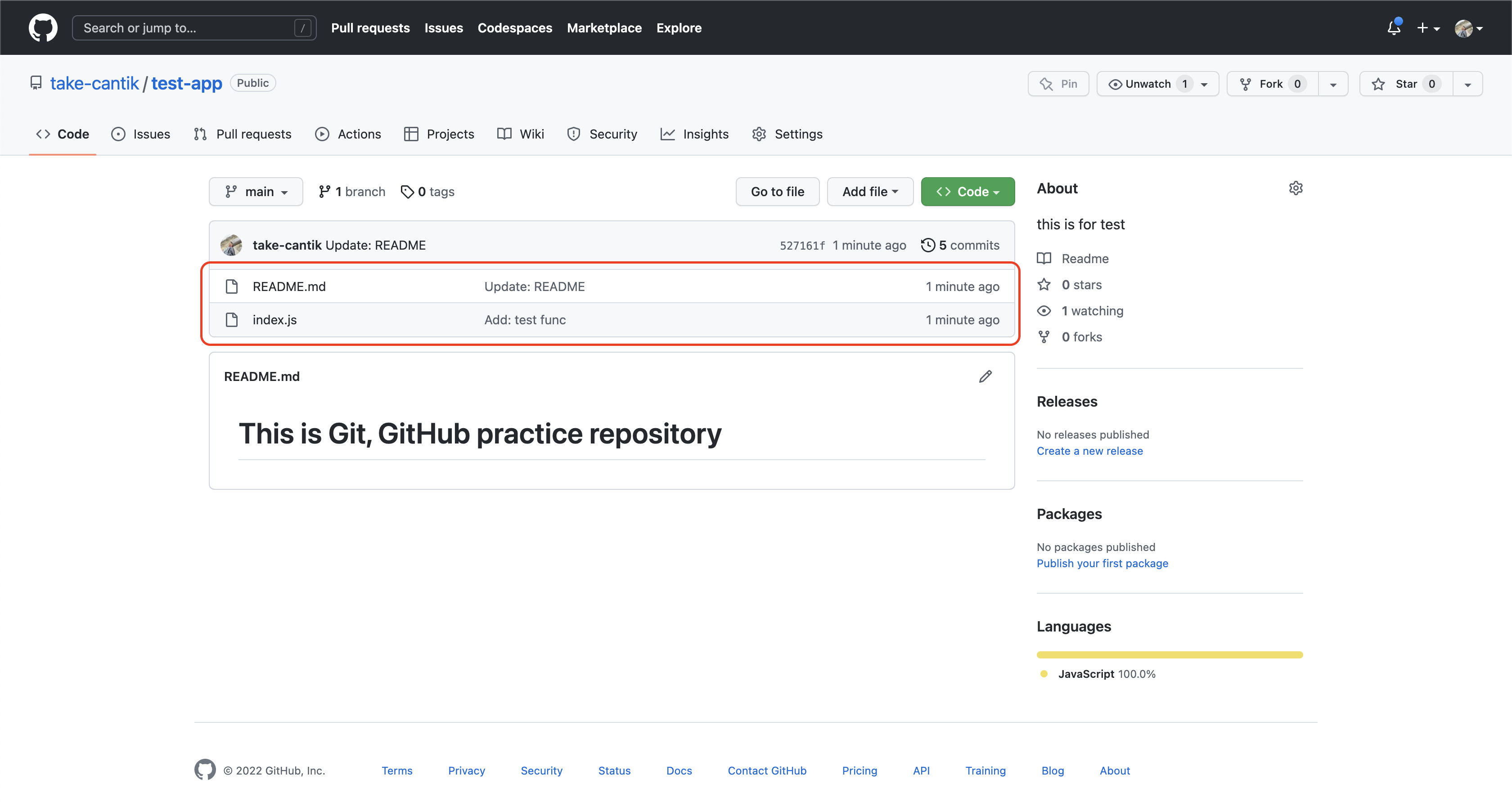 test();# This is Git, GitHub practice repositoryこれまでの変更をリモートリポジトリへ反映させます。