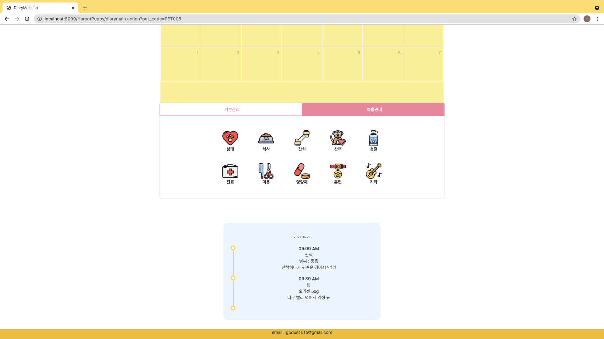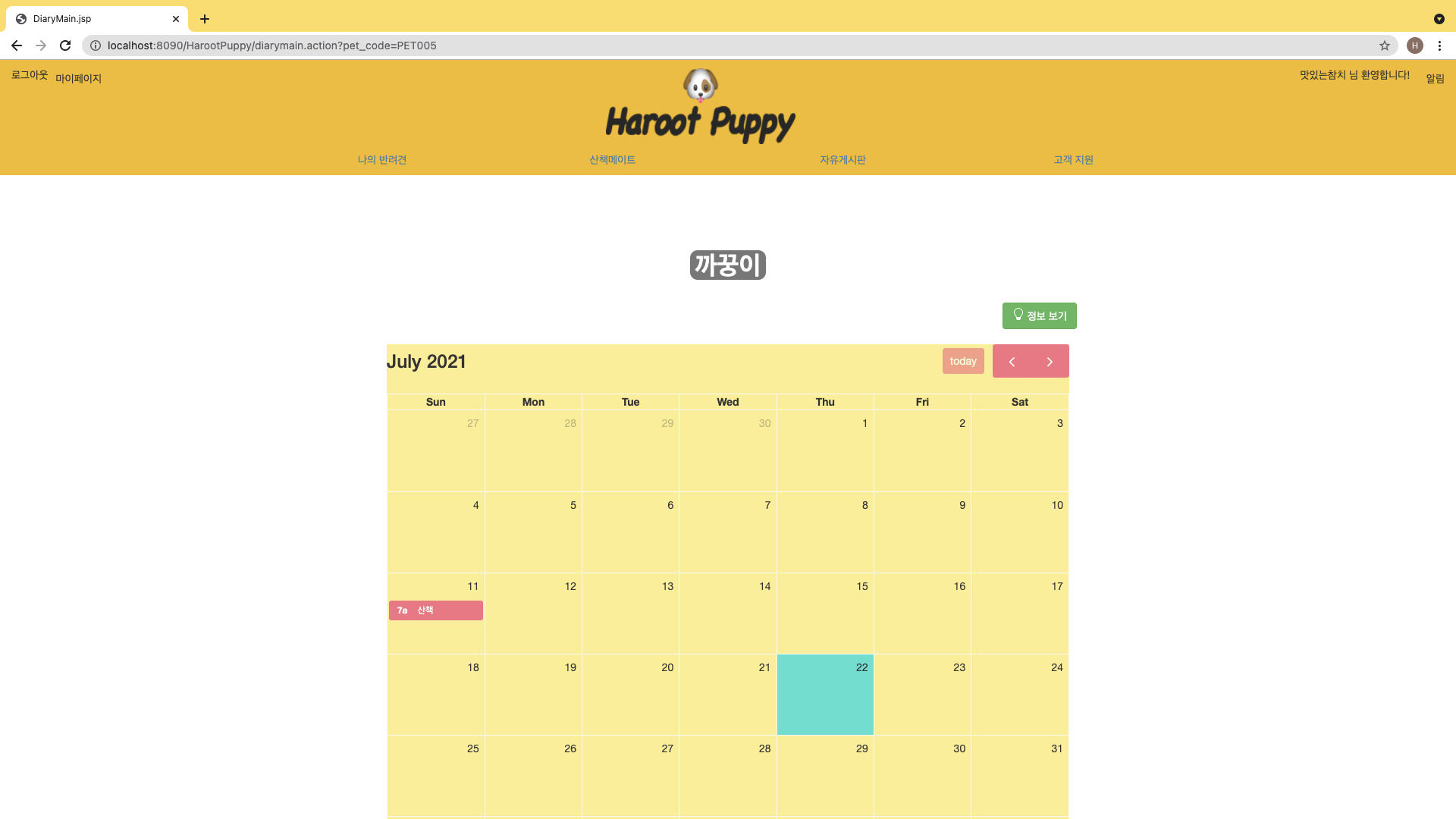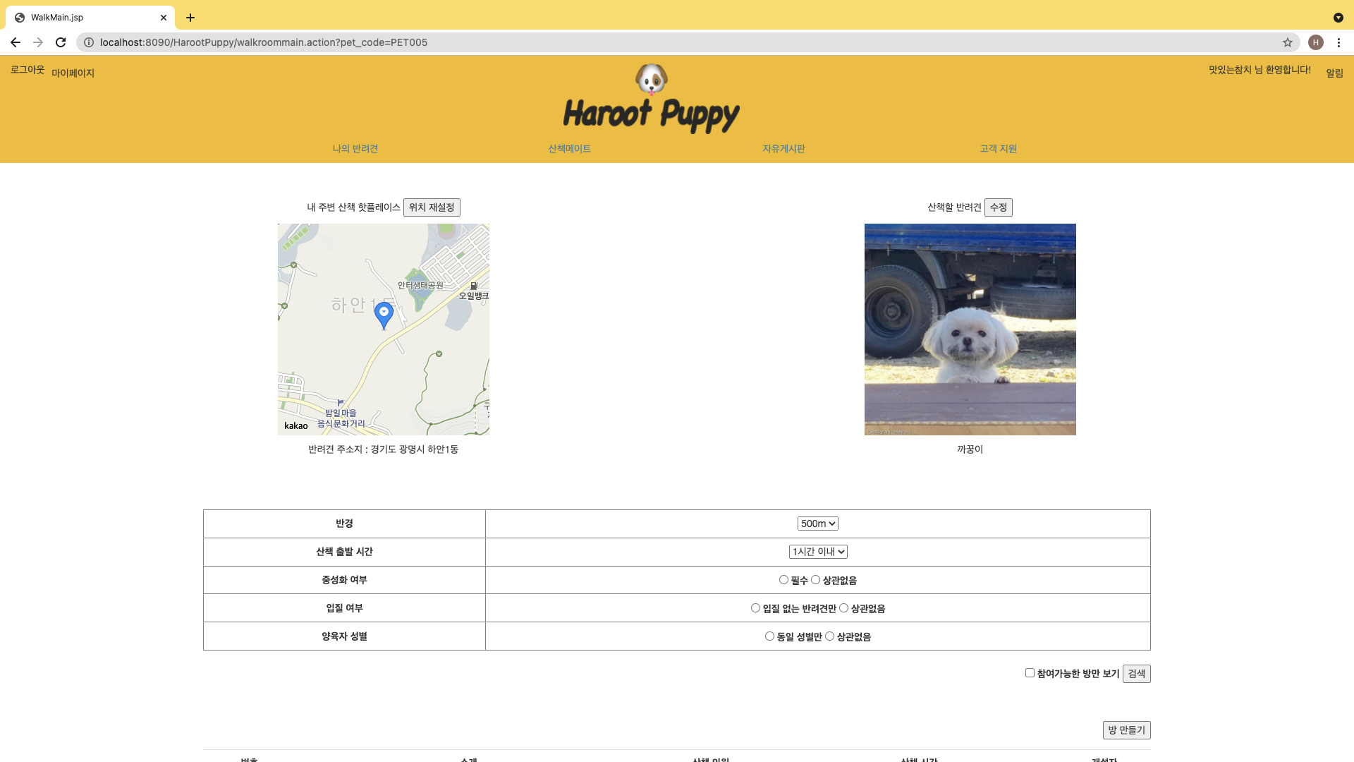 반려견의 건강 정보를 기록 및 일괄 관리하는 다이어리 서비스와 매칭 시스템을 통한 동행 산책 약속 서비스를 제공하는 웹 어플리케이션 제작