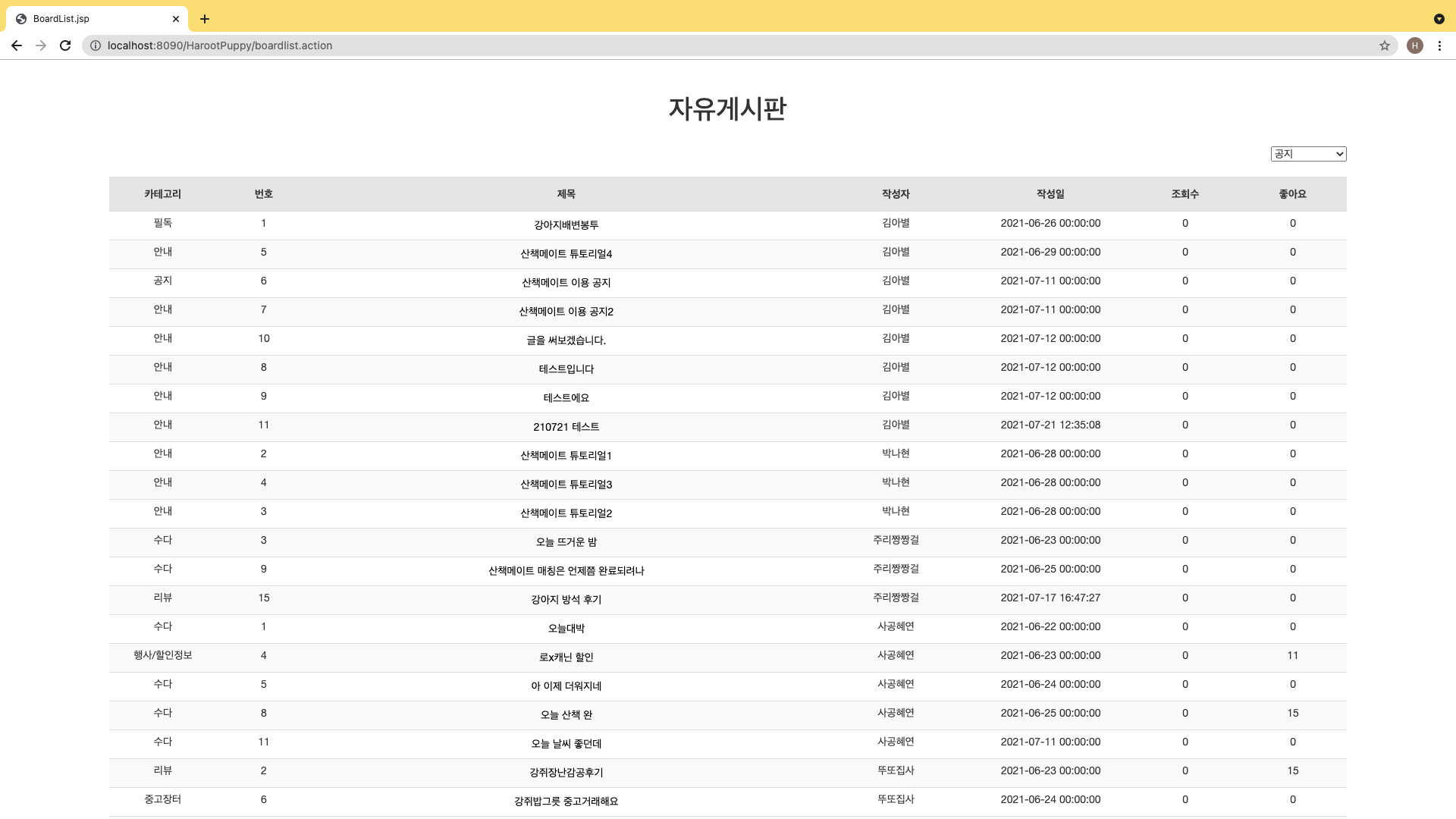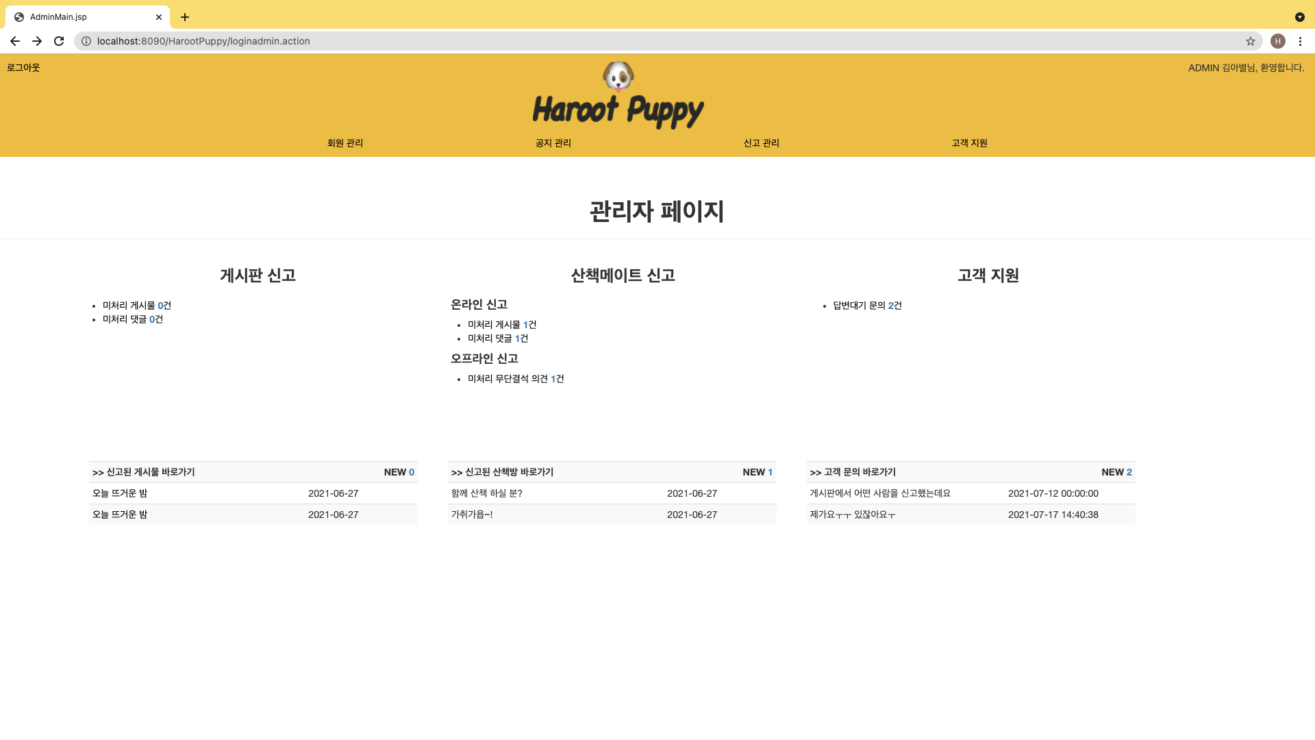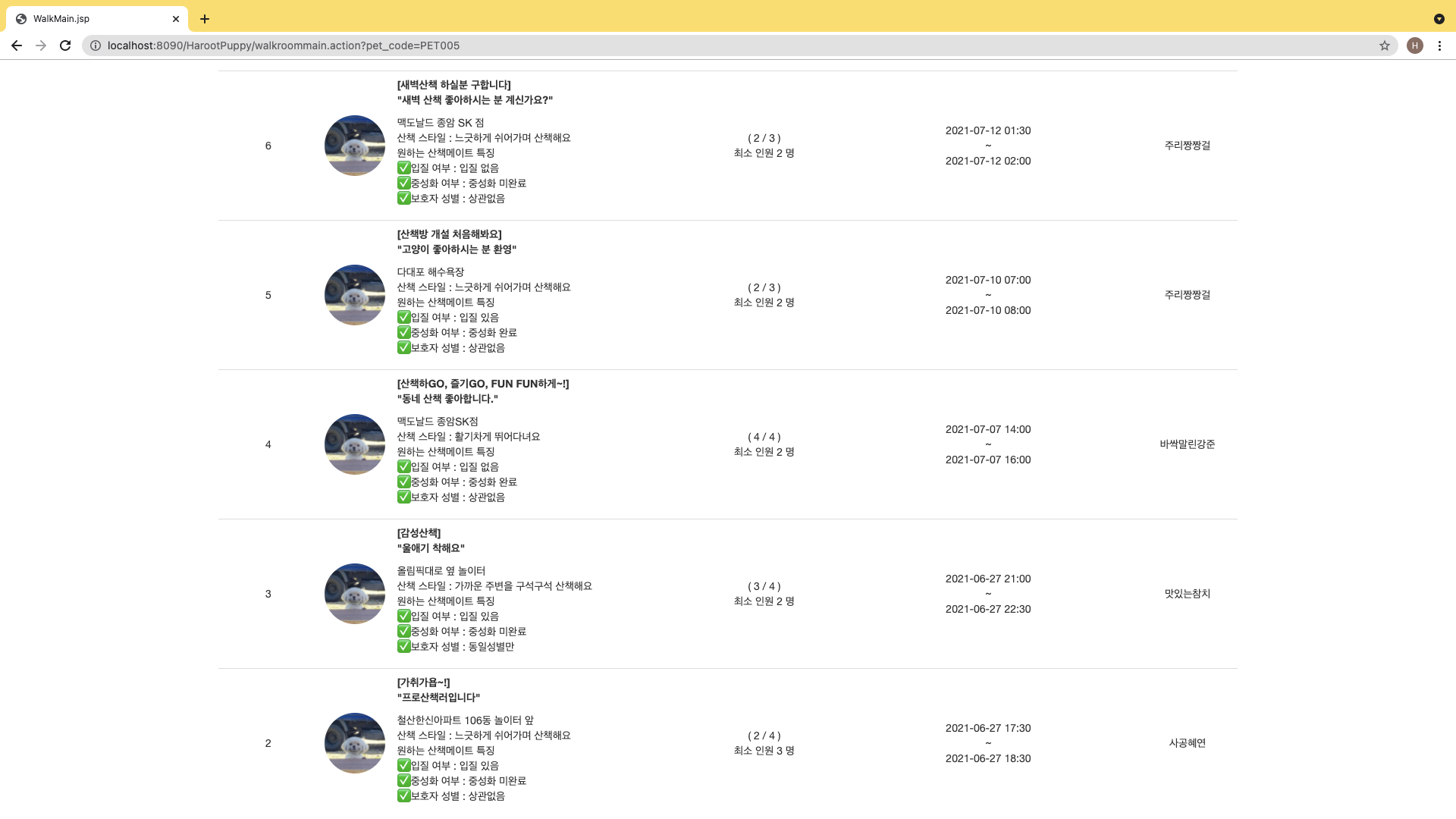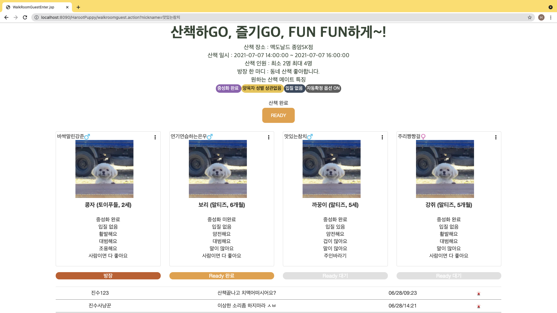 반려견의 건강 정보를 기록 및 일괄 관리하는 다이어리 서비스와 매칭 시스템을 통한 동행 산책 약속 서비스를 제공하는 웹 어플리케이션 제작