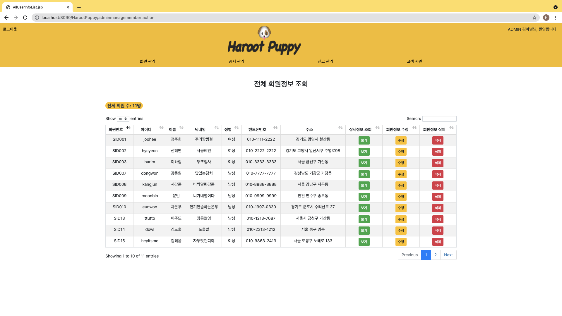 - Mybatis 와 SpringMVC Pattern 을 활용한 Database 와 뷰 페이지 연결