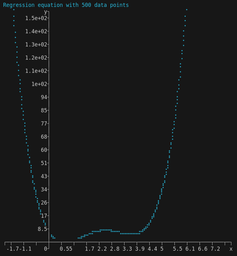 - Plots the equation with 500 points with the minimum and maximum of the loaded x-data