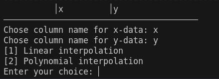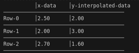 - Shows a table x-values, y-values and the interpolated data
