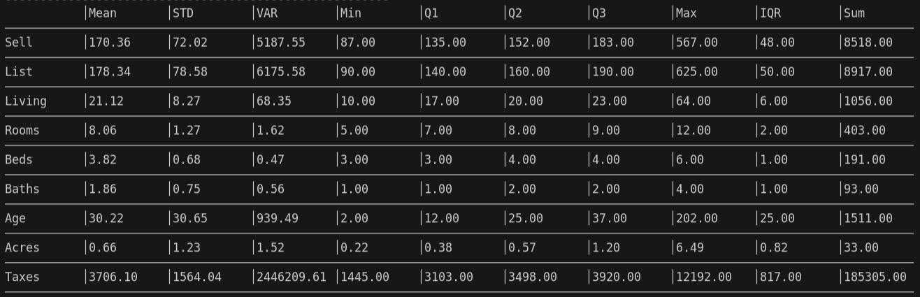 - Statistical analysis of all columns in the table
