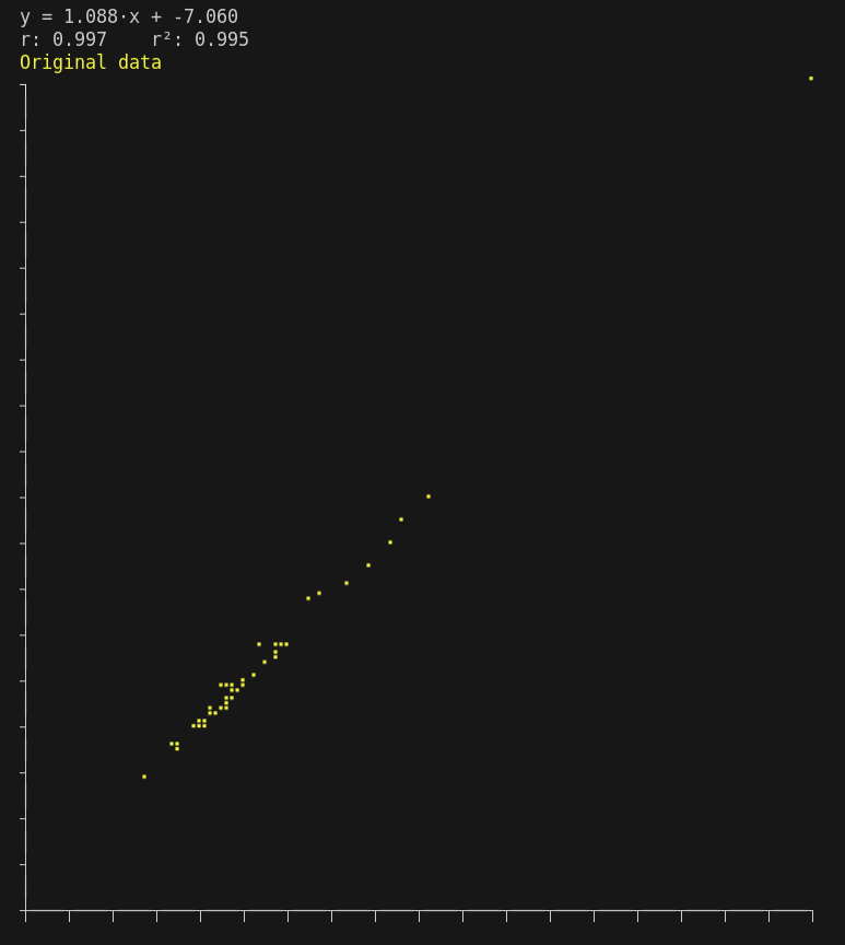 - Linear regression shows slope and y-intersect in equation form