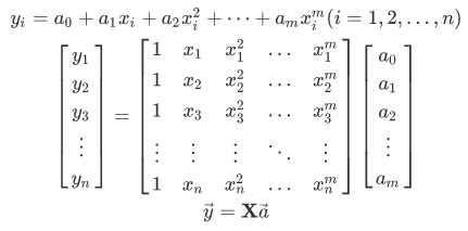 - Through code it can be simplified such as in order to get the matrix X we need a few loops that calculates the power or each x-value and assign it into the correct place of the matrix